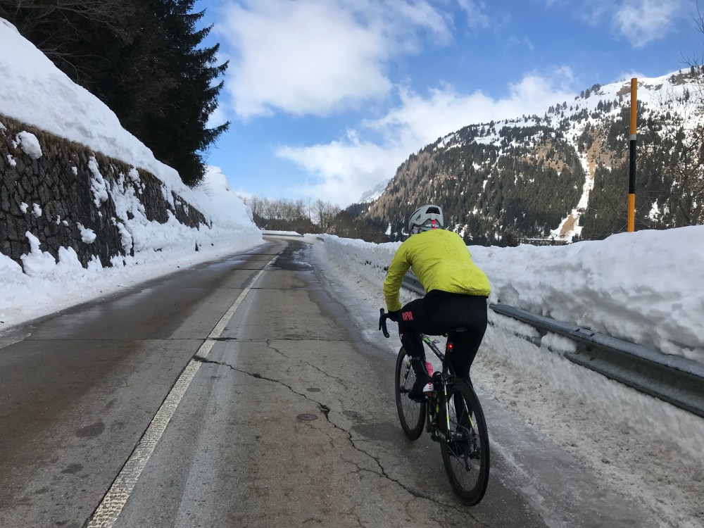 Arrivati a Torre, l’acqua ha iniziato a mischiarsi alla neve, o si è solamente solidificata per il freddo. Cazzo nevica e stiamo pedalando, siamo gasatissimi, non ci importa niente della strada bagnata della temperatura di 5°C , io mi sto sentendo un badass. Saliamo sempre di più. Le temperature scendono sempre più.