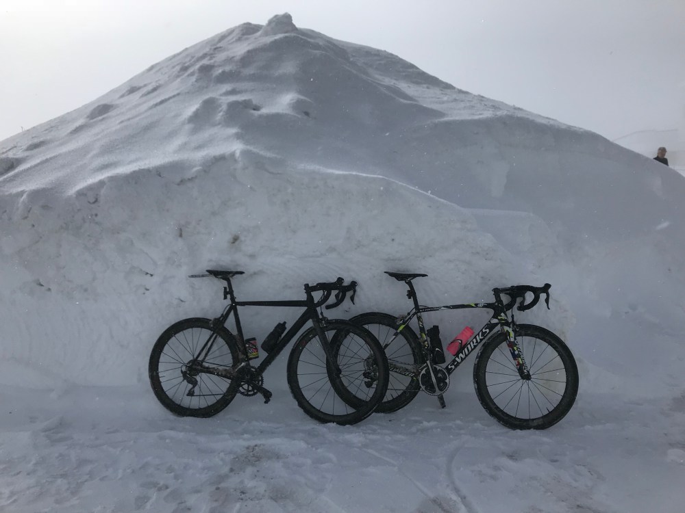 La strada inizia ad essere molto sporca, obbligandoci a pedalare in mezzo alla corsia o addirittura in mezzo alla strada, rischiando così più volte di essere investiti e lanciati in una muraglia di neve.